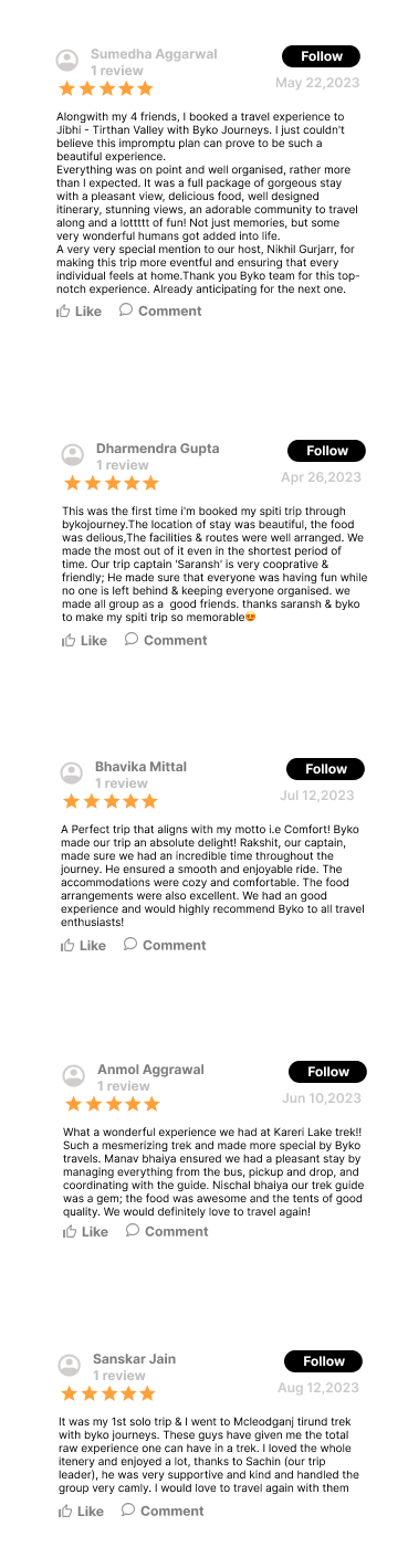 Our entire team puts rigorous efforts on ground to make sure your experience is a top notch one. Awesome stays, friendly drivers, hospitable ground staff is ready to make your trip the most memorable for lifetime.